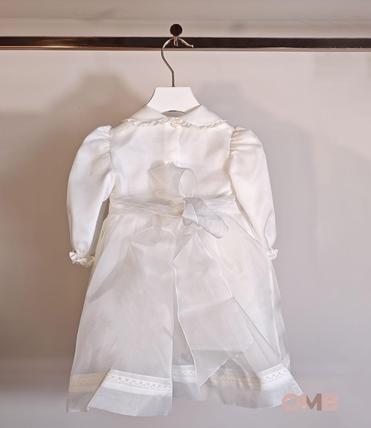 Abito battesimale neonata, con possibilità di abbinare anche la cuffietta. Dettagli con ricami fiori rosa e motivo nido d'ape.