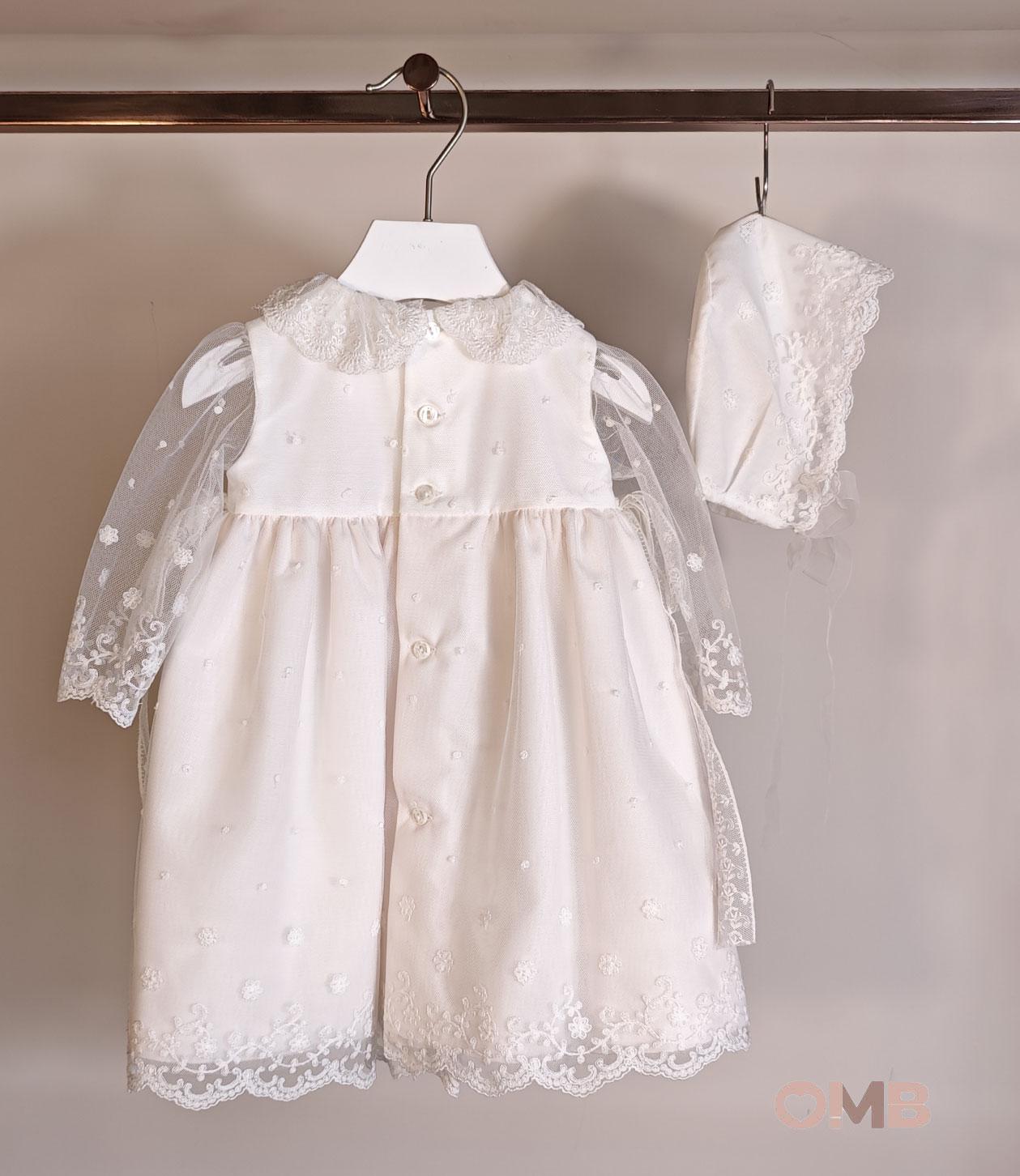 Maniche velate con ricami. Colletto ondulato con ricami. Chiusura sul retro.