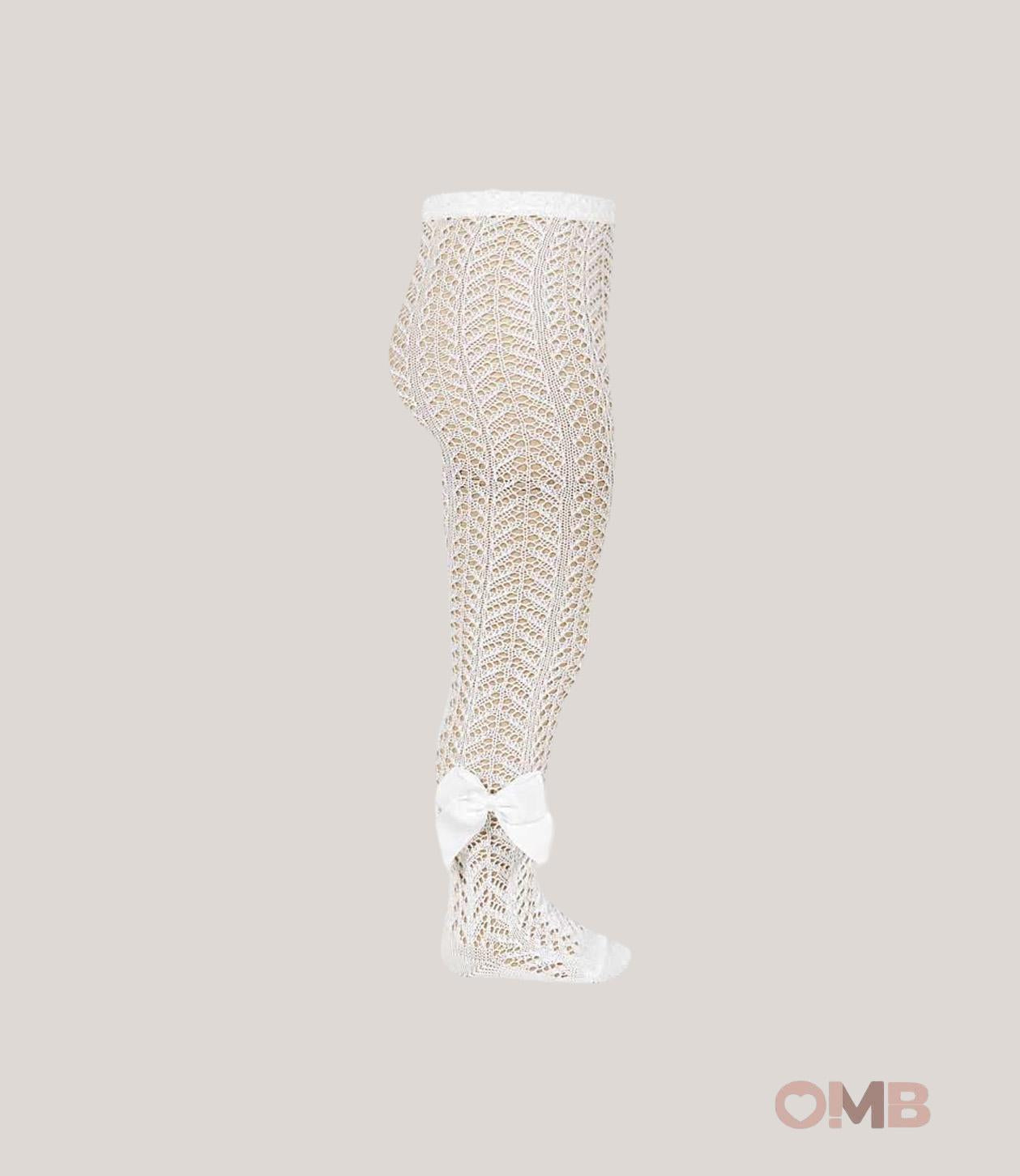 Calzamaglie in cotone con motivo traforato a spiga con fiocco gros grain.