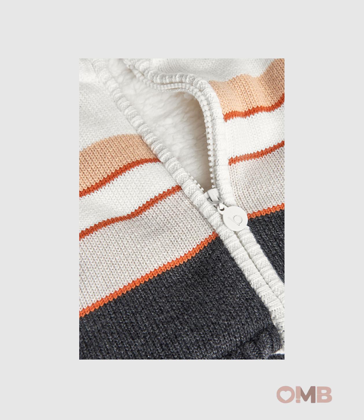 La giacca in maglia bianca per neonati di Boboli è realizzata in morbido tessuto misto cotone e viscosa, con finiture di poliestere e lana. Design minimal e raffinato, chiusura a zip e cappuccio.