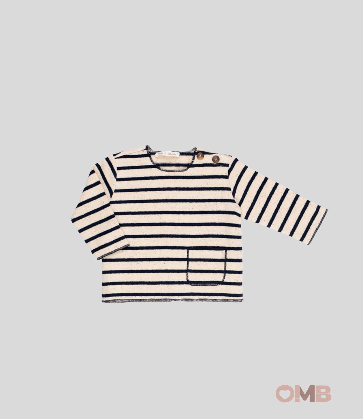 La felpa neonato Zhoe & Tobiah è un capo pratico e raffinato, perfetto per accompagnare i più piccoli con stile e comfort. Realizzata in tessuto morbido e traspirante, presenta una base beige con righe blu a contrasto, per un design semplice ma elegante.