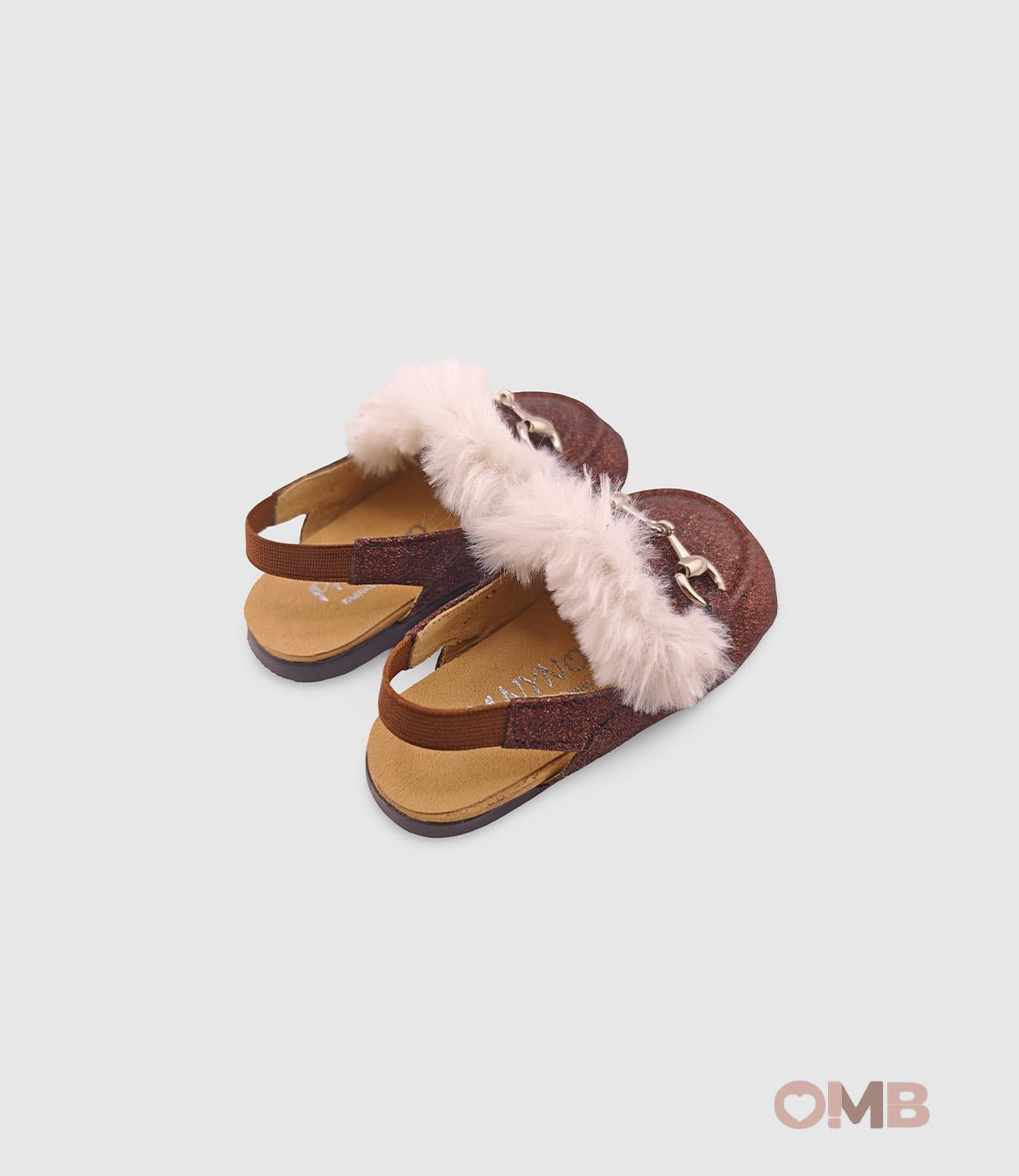 I sabot da bambina in color bronzo sono la scelta perfetta per un look elegante e moderno. Caratterizzati da una tomaia scintillante e da un morbido inserto in eco-pelliccia, uniscono stile e comfort in un design unico. La fibbia decorativa sul davanti aggiunge un tocco sofisticato, mentre il cinturino posteriore assicura una calzata stabile e pratica.