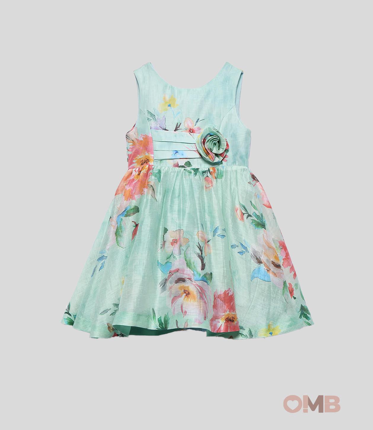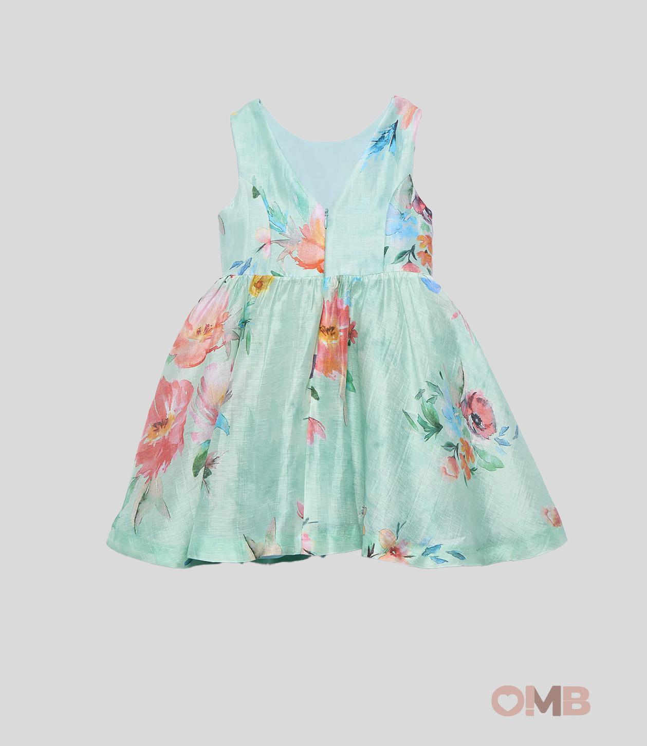 Abito bambina Abel&Lula 5053 Verde fiori zip lino cotone giromanica