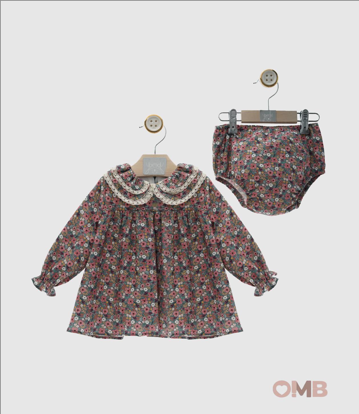 Completo elegante e raffinato pensato per bambine che desiderano un look sofisticato insieme alla comodità. Il vestito, impreziosito da un incantevole motivo floreale, è completato da una coulotte coordinata. Il tessuto di alta qualità, morbido e confortevole, garantisce libertà di movimento e comfort per tutto il giorno. I dettagli curati come lo smock sul davanti e i volant donano charme e femminilità al capo.