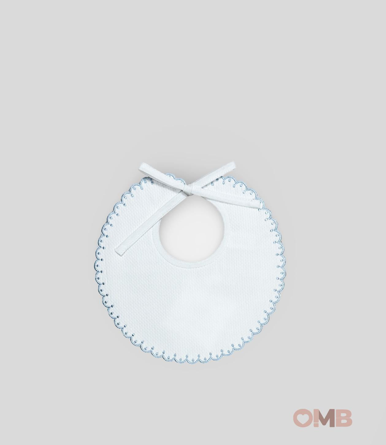 Bavaglino per neonato in cotone con profilo azzurro ondulato.