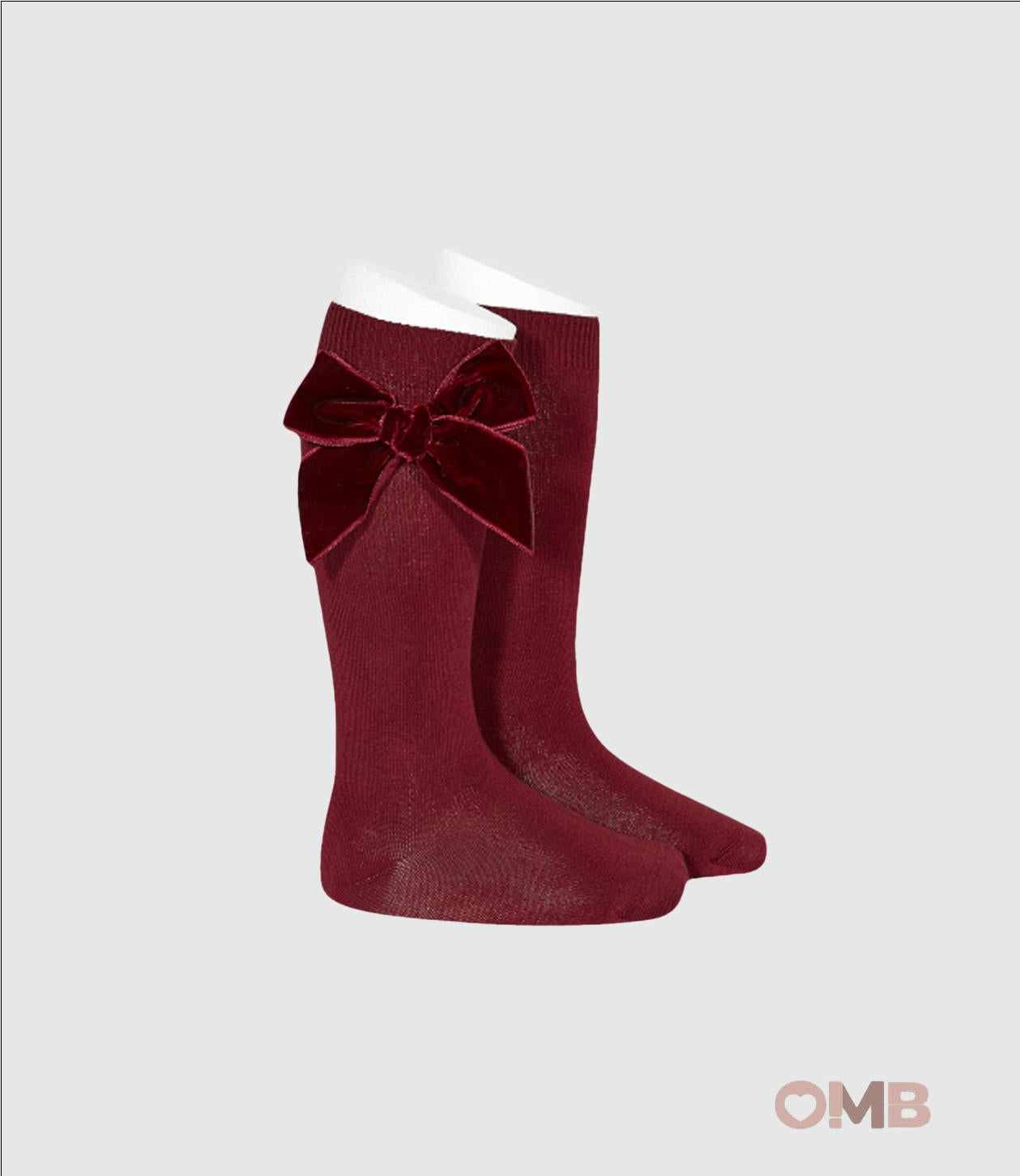 Calze lunghe in cotone a maglia rasata con grande fiocco in velluto.