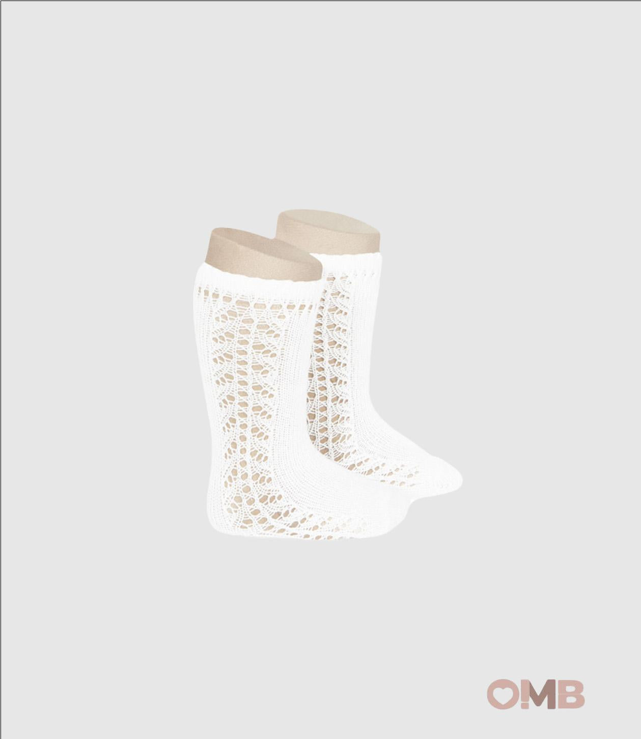 Calze lunghe in cotone caldo con traforato sul lato.