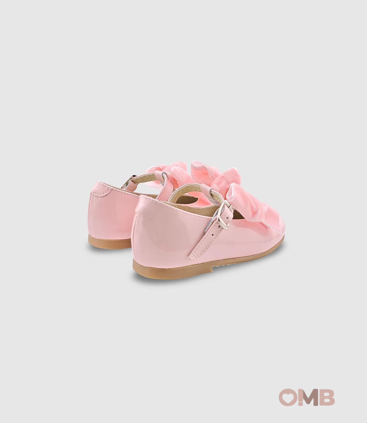 Finitura lucida, con dettaglio fiocco in velluto e chiusura laterale.