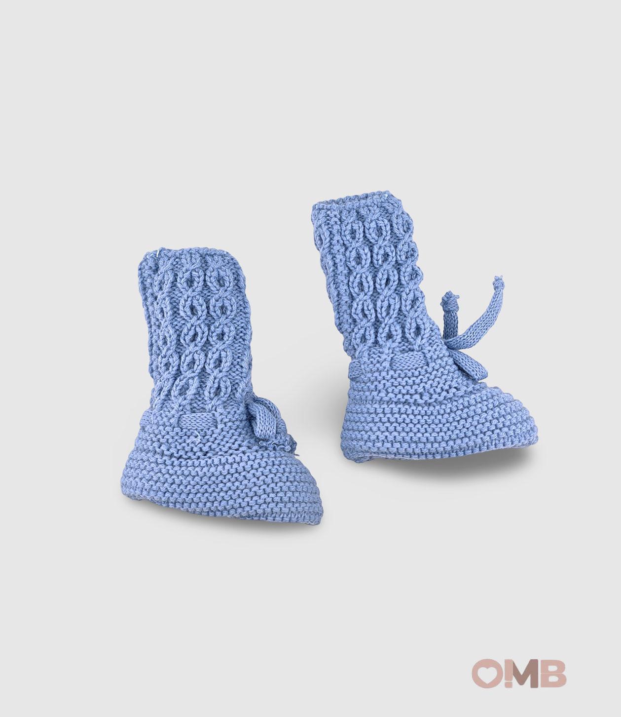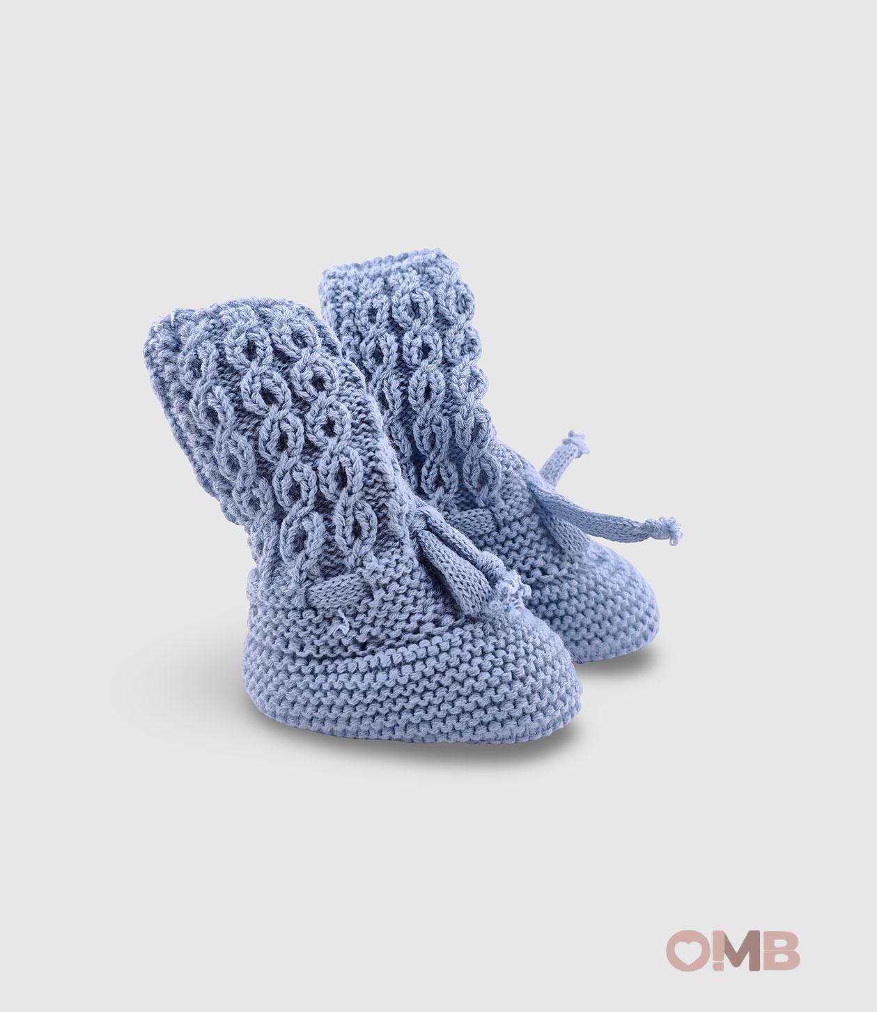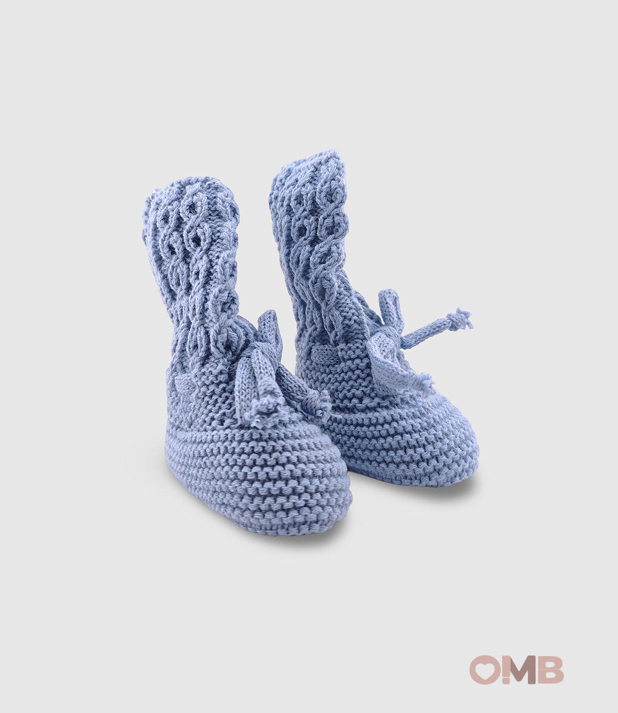 La babbuccia con lavorazione a ochos avvolge il piede con un morbidissimo tessuto, pensato per il massimo comfort e traspirazione della pelle fragile del bebè. La sua altezza alta offre una calzata protettiva anche nelle stagioni più fredde, mentre il delicato punto a trecce (ochos) dona un tocco classico e raffinato.