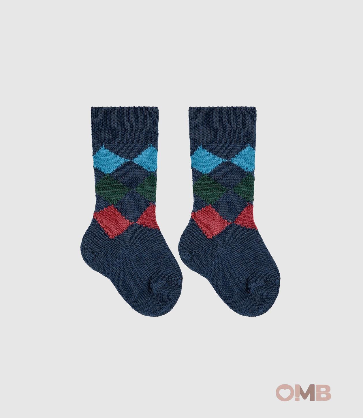 Calzini CONDOR bambino 1845/2 Blu lana merino rombi multicolore