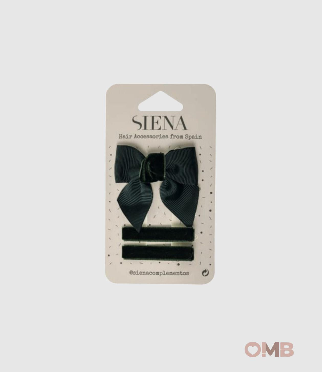 Set composto da un elegante fiocco in gros grain rivestito in velluto e due pratiche pinzette abbinate. La combinazione di tessuto gros grain e velluto conferisce un look raffinato e morbido, perfetto per ogni occasione, dalla scuola agli eventi più speciali.