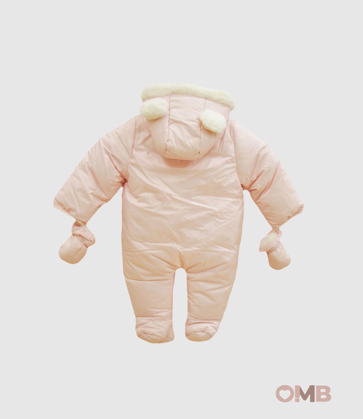 Tutone Imbottito con cappuccio e orecchie, manica lunga con polsino elastico, tasche a orsetto laterali, chiusura con zip sul davanti.